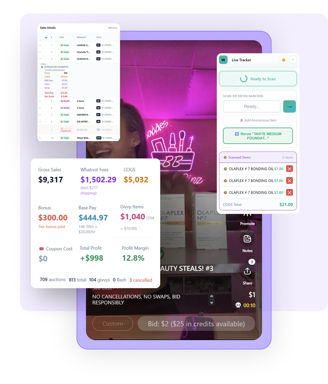 Scan items as you stream, and our live tracker stays open alongside your show. After the stream, we capture every sale and break down profit and loss per item, while accounting for fees, giveaways, and streamer commissions, giving you complete oversight into how the stream actually performed.