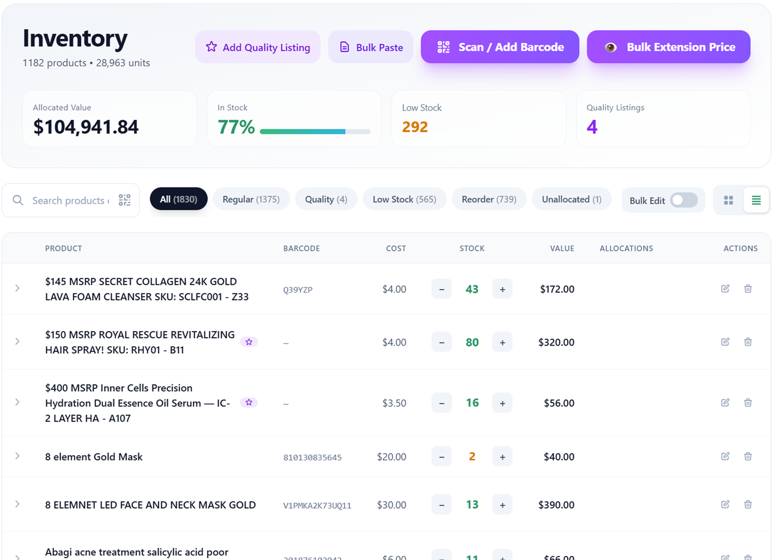 Add products once, set costs, and keep inventory accurate automatically—even as costs change over time.